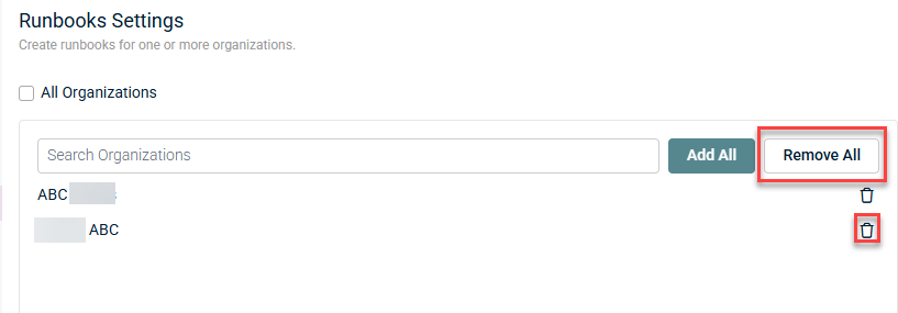 - Click the trash can icons to remove organizations one-by-one or,