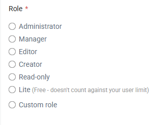 - Choose a role to define the actions the user is permitted to perform.