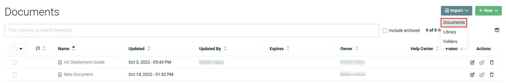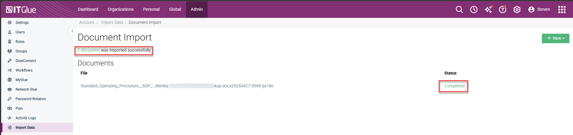 The following instructions show you how to import a document so that the document's contents are converted into a new IT Glue document.