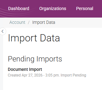 - Select an organization you want to import documents for.