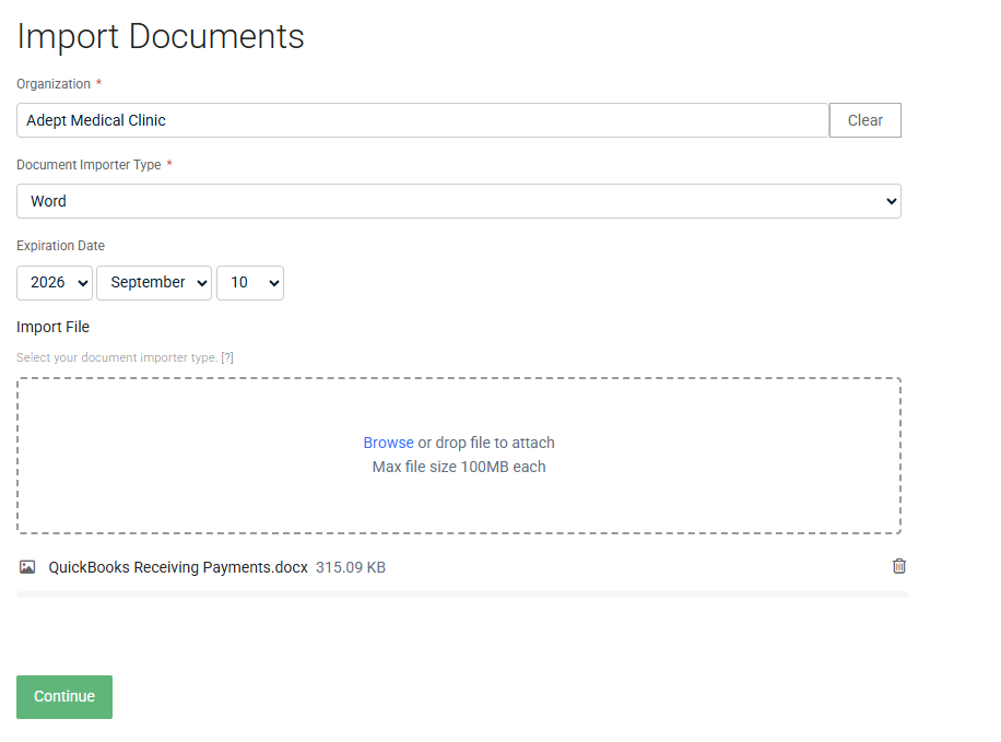 - From the Document Importer Type drop-down menu, select the type of file you are importing.