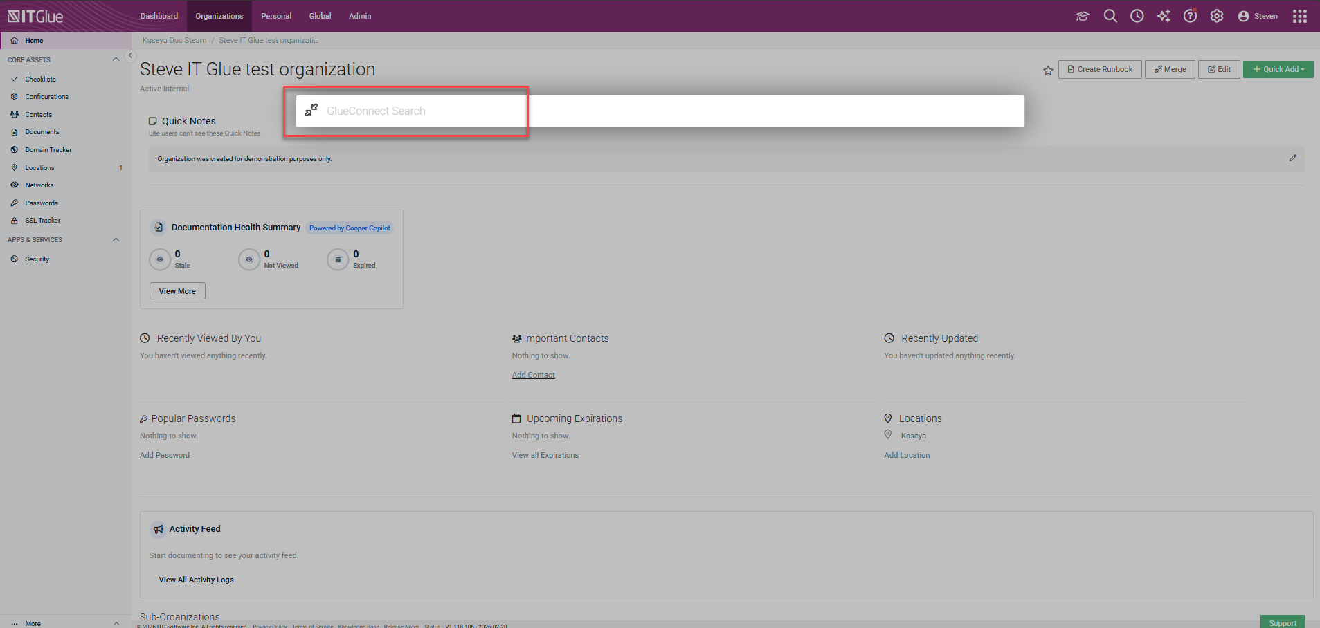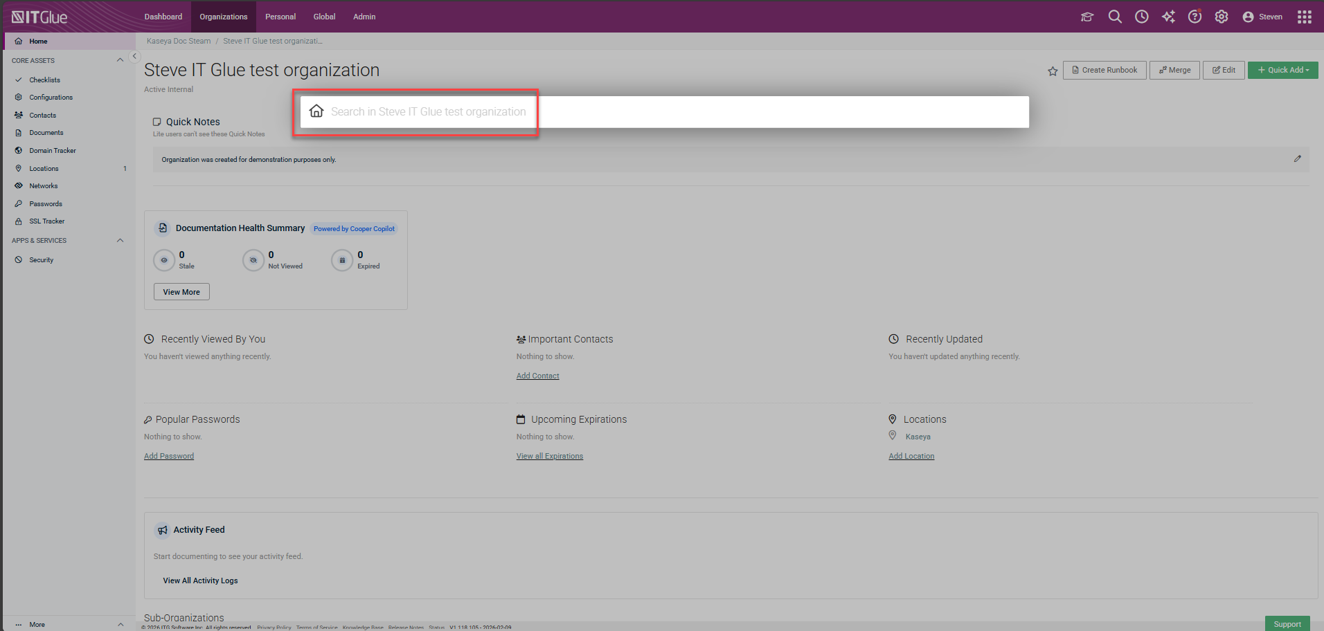 Start searching in IT Glue